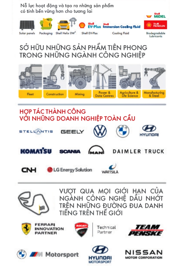 Shell nhận được hơn 3000 phê duyệt & khuyến nghị của các OEM toàn cầu, bao gồm: