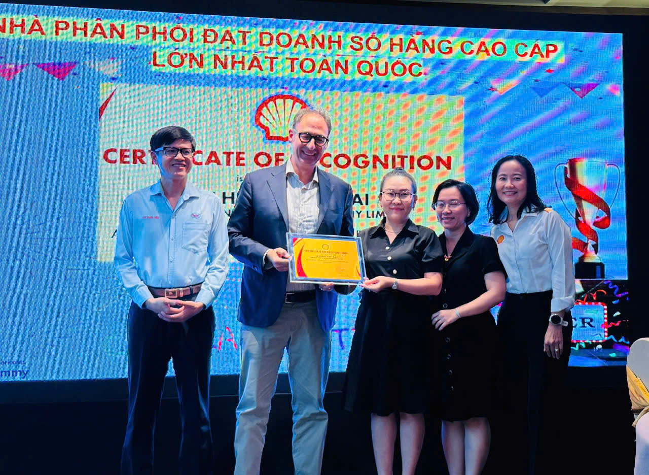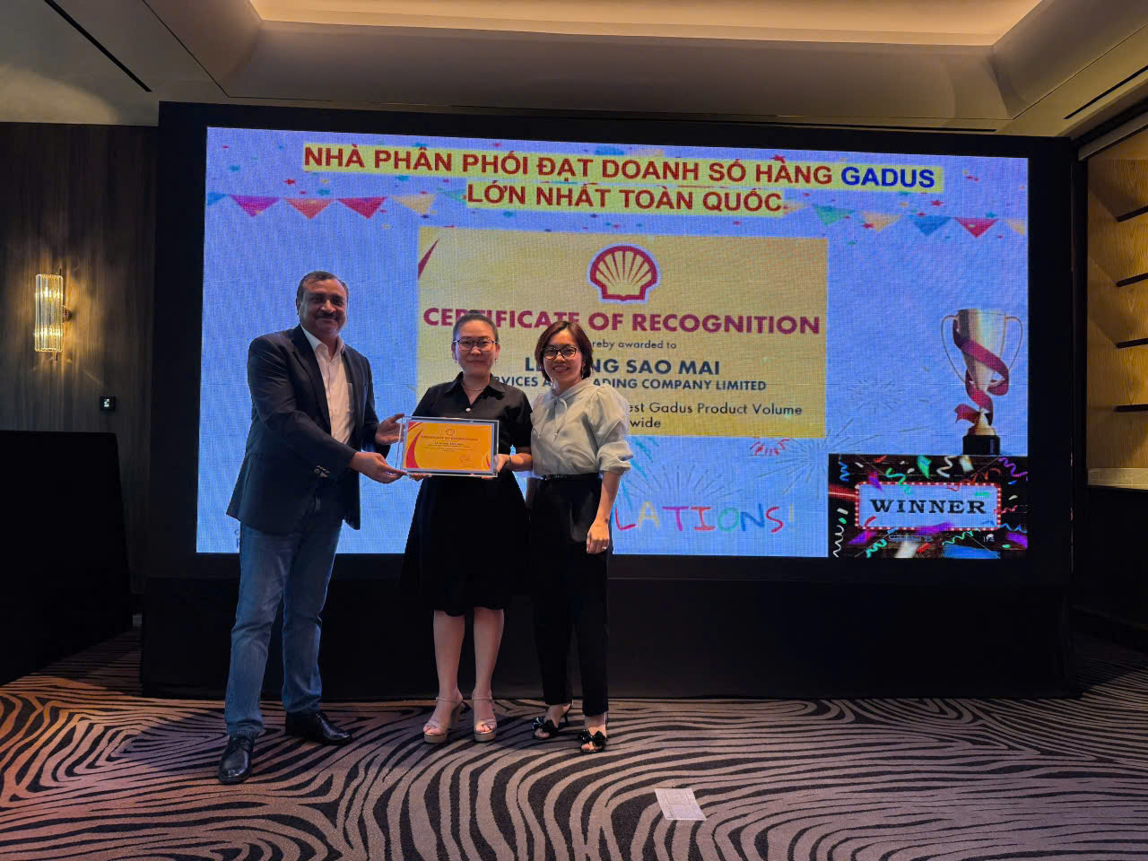 Công ty TNHH TM DV Lê Hùng Sao Mai vừa được Tập đoàn dầu nhớt Shell vinh danh với hai giải thưởng quan trọng tại buổi họp chiến lược cấp cao. Điều này khẳng định vị thế của Công ty Lê Hùng Sao Mai là đối tác chiến lược toàn diện và nhà phân phối hàng đầu của Shell tại Việt Nam.